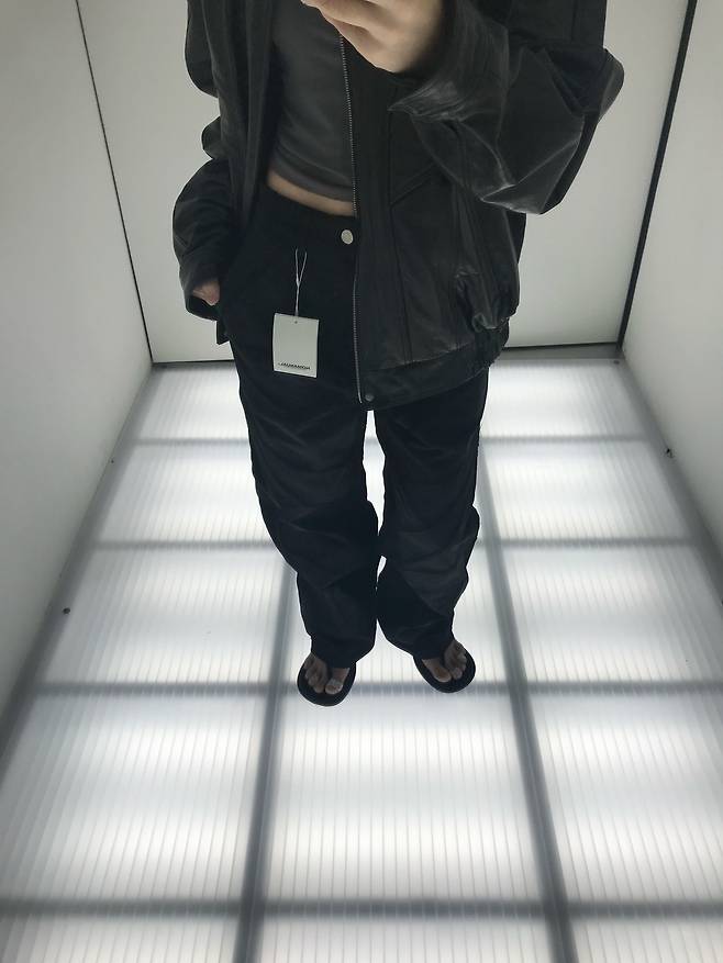 이렇듯 올블랙룩에 포인트를 주고 싶을 땐 차콜색을 활용하는 방법도 좋아요.