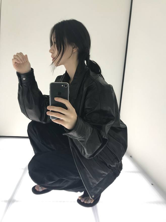 올블랙룩 코디를 입을 때 주로 하는 헤어스타일이기도 해요.