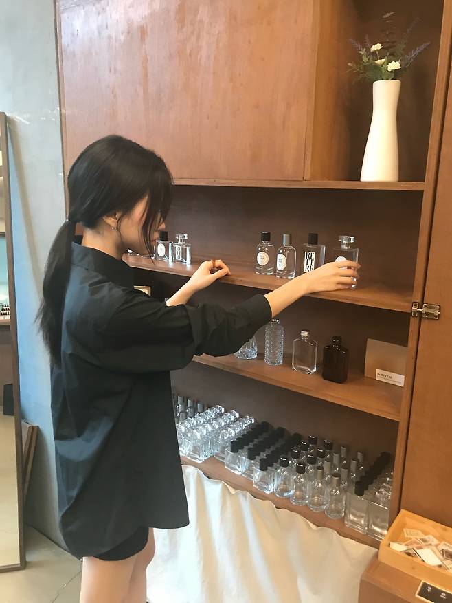 세 번째 코디의 헤어스타일로는 하나로 묶어 연출해주었답니다.