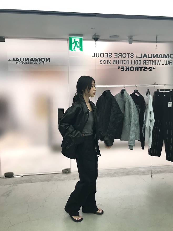 올블랙룩에서 포인트를 주고 싶다면 차콜색을 활용하거나