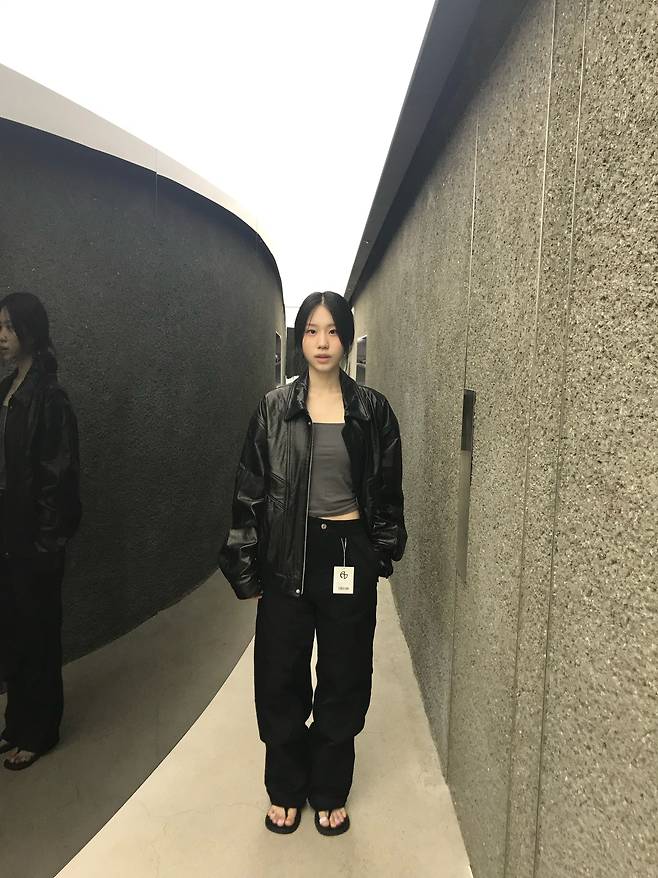 올블랙룩에서 포인트를 주고 싶다면 차콜색을 활용하거나