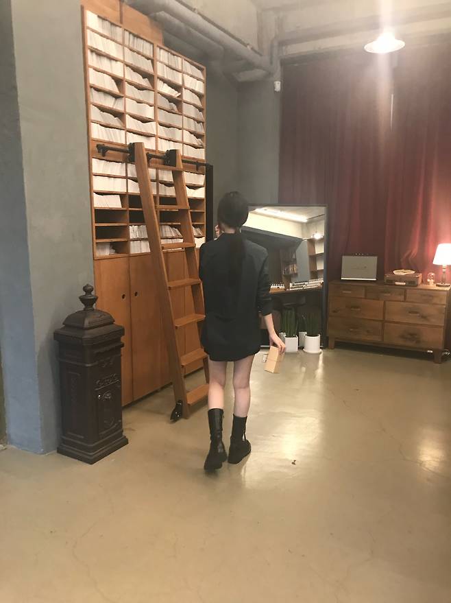 올블랙룩 코디를 입을 때 주로 하는 헤어스타일이기도 해요.