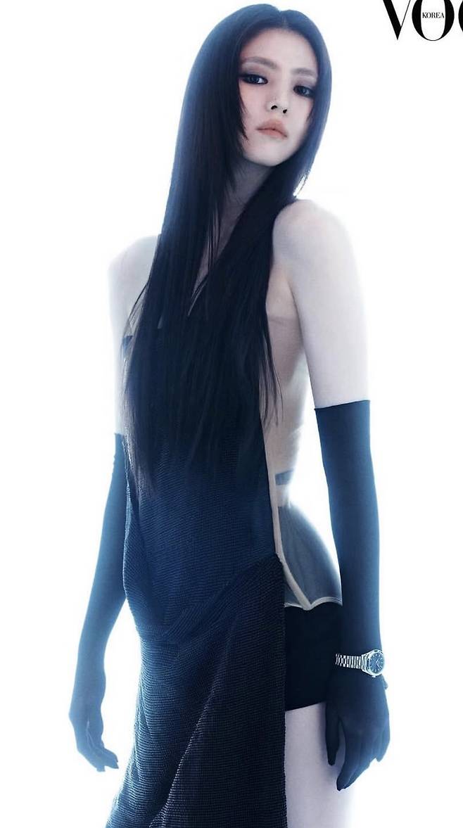 ‘보그 코리아’ 화보 속 한소희는 구조적인 실루엣의 블랙 드레스로 강렬한 존재감을 드러냈어요.