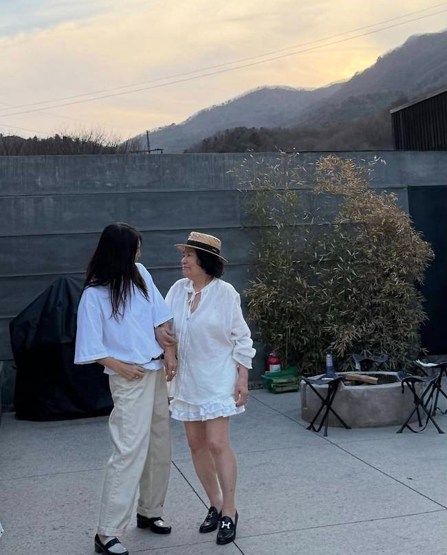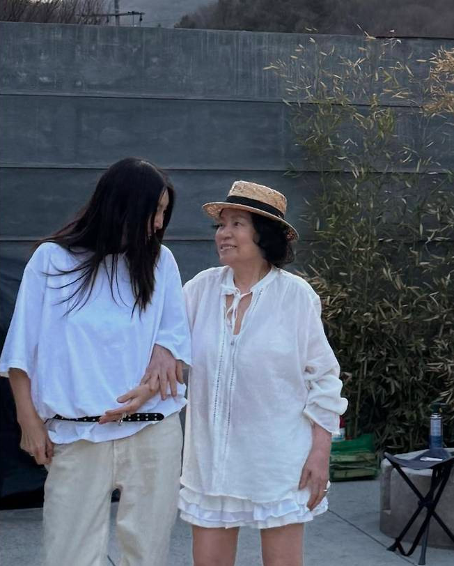 그런가 하면 황신혜의 어머니는 화이트 셔츠와 같은 디자인의 러플 스커트를 착용, 스트로 햇으로 마무리하며 청량한 클래식 무드를 자아냈다 했습니다.