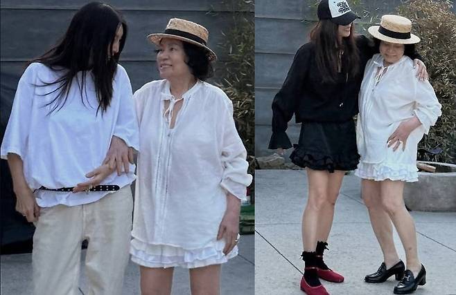 두 사람은 루즈핏 블라우스와 미니스커트 조합으로 나이가 믿기지 않는 동안 미모의 트윈룩을 선보였습니다.