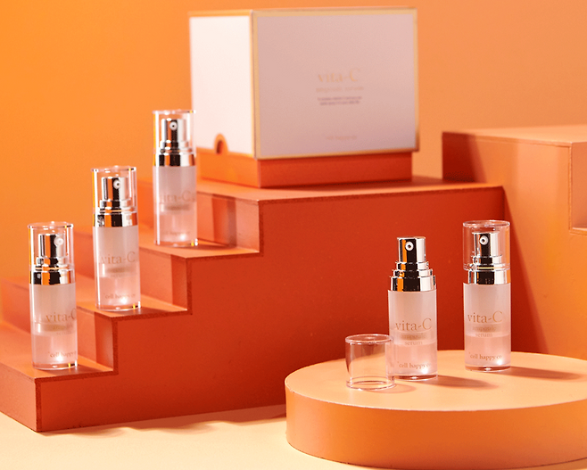 셀해피코 브랜드를 만들 때부터 헤어케어 제품과 스킨케어 제품을 함께 개발했다. “시중에 비타민C 앰플을 보면 대부분 짙은 색 병에 담겨져 있죠. 비타민C가 쉽게 산화되는 성분이기 때문인데요. 빛을 차단했다고 해도 열었다 닫을 때마다 산소에 닿는 건 마찬가지죠. 셀해피코의 ‘비타C앰플 세럼’은 산화되지 않게 비타민C를 캡슐화한 제품입니다. 사용하기 전에 톡 터트리는 방식이죠. 비타민C와 만났을 때 가장 시너지 효과를 낼 수 있는 에센스도 더했어요. 펩타이드, 알부틴, 토코페롤, 글루타치온 등을 배합해 만든 에센스입니다.”