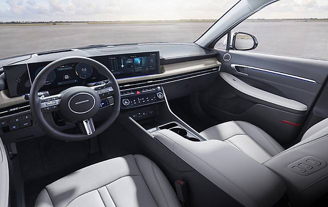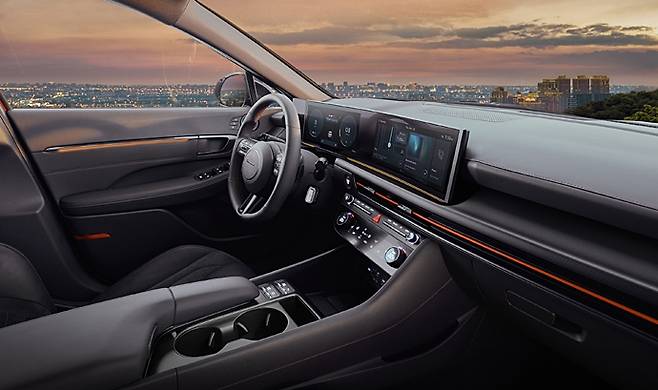 특히 현대차 최초로 적용된 파노라믹 커브드 디스플레이는 운전석과 센터페시아까지 디지털 클러스터와 내비게이션 화면이 하나로 쭉 이어져 깔끔하고 세련된 인상을 남긴다.