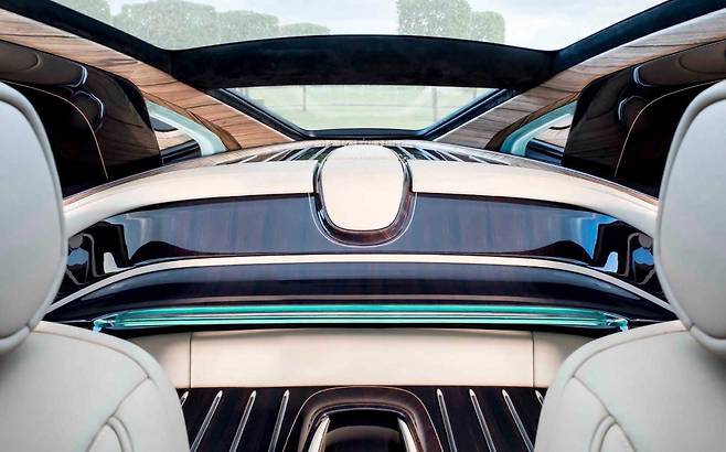 스웹테일의 외관은 전통적인 롤스로이스의 디자인 요소와 현대적인 감각이 조화를 이루고 있습니다. 전면에는 대형 알루미늄 그릴과 메탈 프레임이 적용되었으며, 차량 전체를 감싸는 파노라마 글라스 루프는 실내에 풍부한 자연광을 제공합니다. 후면부는 클래식 요트의 선미를 연상시키는 테이퍼드 디자인으로 마무리되어, 우아한 실루엣을 완성합니다.
