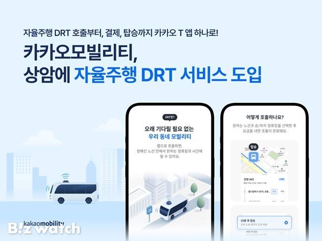 카카오모빌리티는 카카오T 플랫폼을 통해 호출부터 탑승, 결제까지 원스톱으로 제공하는 '자율주행 DRT 서비스'를 서울 상암 지역에 도입한다.