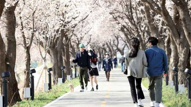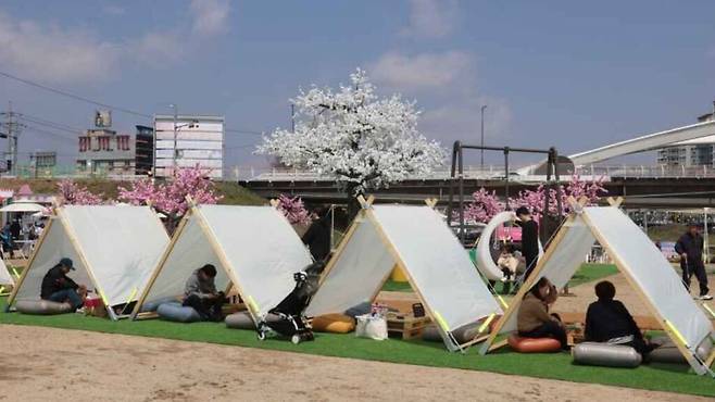 벚꽃 피크닉존에 자리를 잡고 앉으면, 음식과 꽃과 햇살이 한꺼번에 차려지는 봄날의 소풍 한 상이 완성된다. 포토존에서는 벚꽃을 배경으로 한 장의 사진이 남는다. 1년 후 이 사진을 꺼내볼 때, 다시 이 길이 그리워질 것이다.