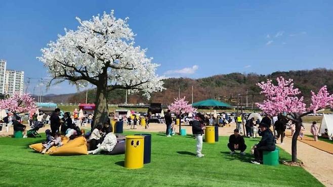 벚꽃이 만개하는 절정의 시기에 맞춰 열리는 이 축제는, 꽃구경만이 목적이 아니다. 보청천 둑길을 따라 늘어선 벚나무들 사이로 노래 소리가 흘러나오고, 마술사의 손끝에서 비눗방울이 꽃잎처럼 피어오르는 풍경이 더해진다.