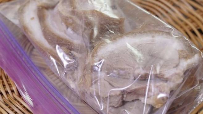 지퍼백에 잘 담은 식은 족발을 뜨거운 물에 담가 주세요. 이때! 물을 절대로 끓이면 안 돼요. 그냥 끓였던 물에만 넣어 주시면 된답니다. 그리고 열이 빠지지 못하도록 뚜껑을 닫고 5분 동안 두세요.