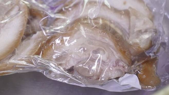 짜잔 5분 후 꺼내보았어요. 처음에는 기름 부위가 식어 있어 딱딱하게 보였는데요. 지금은 다시 야들야들 맛있는 족발로 돌아왔답니다.