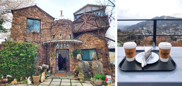 커피가 저렴한 편은 아니지만, 뷰를 생각한다면 전혀 아깝지 않은 값일 정도인데요. 또한 이곳은 주차공간이 따로 없기 때문에 가벼운 등산을 18분 정도만 즐기면 만나볼 수 있습니다.
