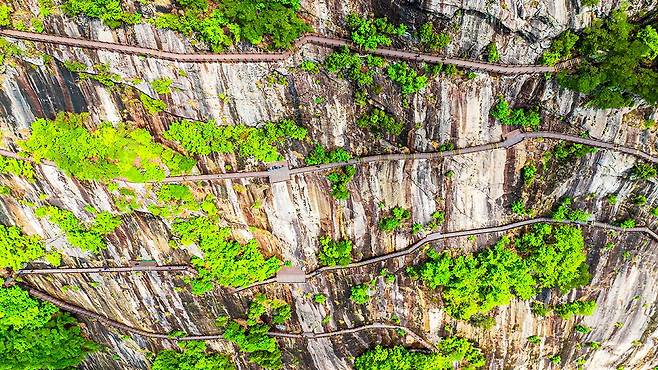 늘 비슷비슷한 등산 코스에 지루함을 느낀다면, 허공에 매달린 듯한 길 위를 걷는 짜릿한 경험은 어떨까.