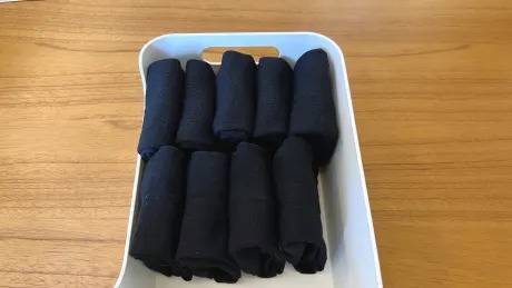 결국 같은 종류의 양말을 신는다면 따로 접지 않고 포개어만 두면 손에 잡히는 대로 2개의 양말을 꺼내 사용할 수 있기 때문에 시간이 절약되는 가장 간단한 방법입니다.