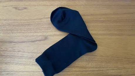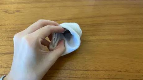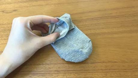 양말을 3등분 한다고 생각하고 접어주고, 양말 입구 부분에 반대 부분을 밀어 넣어줍니다.
