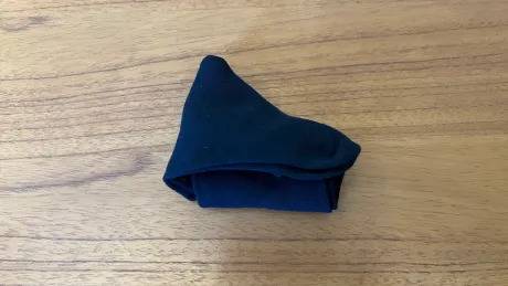 양말의 발 끝 부분을 위로 접어 삼각형으로 만들어줍니다.