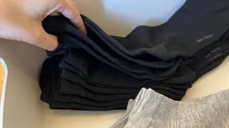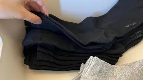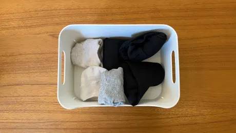 많은 분들이 겹쳐진 양말을 반대로 뒤집어 보관하는 방법을 사용하지만, 이런 방식은 깔끔하지 않을 뿐더러 양말의 밴딩 부분이 늘어날 수 있습니다.