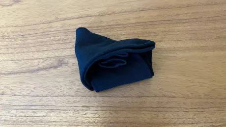 두 번째 삼각형 접기 방법에 비해 모양새가 엉성하긴 하지만 더 빠르고 발목 밴딩이 늘어나지 않는 방법입니다.
