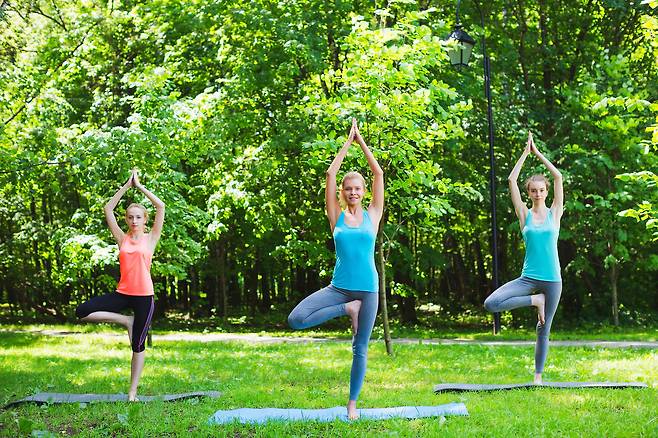 요가 동작으로는 한 다리로 버티는 '나무 자세'가 좋습니다. 대부분의 사람이 왼쪽과 오른쪽의 균형이 맞지 않는데, 그럴 땐 안 되는 쪽을 좀 더 해주세요.
