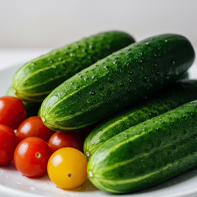 다음은 오이와 방울토마토 같은 수분 채소예요.