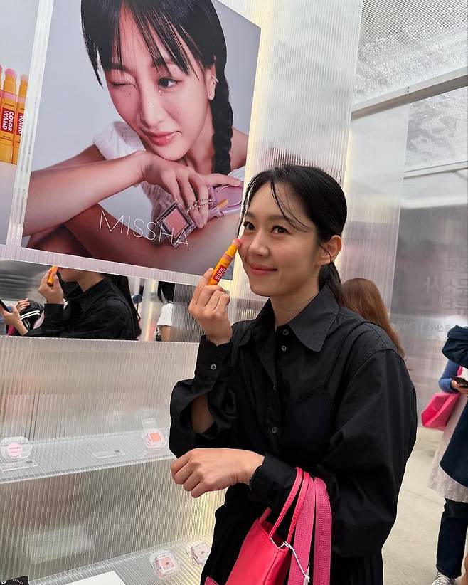 성수동에서 열린 '무신사 뷰티 페스타' 현장에서 아나운서 엄지인이 블랙 셔츠 원피스를 활용한 감각적인 스타일링으로 눈길을 끌었다. 선명한 핑크 컬러의 쇼핑백과 풍선, 그리고 무신사 뷰티 배경과 대조되는 올블랙 룩은 도심 속 세련된 분위기를 한층 끌어올렸다.