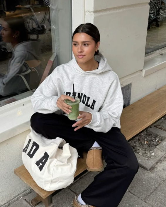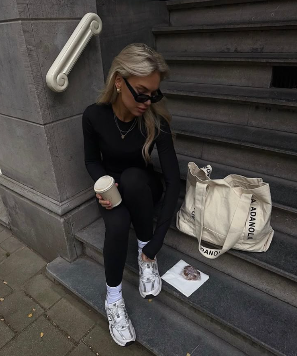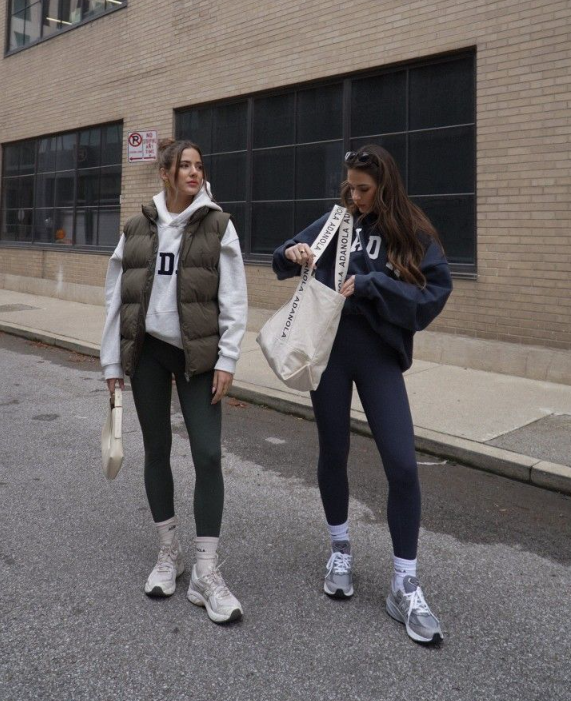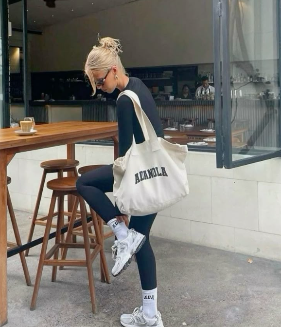 사진 속 그녀들처럼 에코백 하나로 세련된 애슬레저룩을 완성하는 게 트렌드! 블랙 올블랙 코디에도, 후드+패딩 조합에도 에코백은 찰떡처럼 녹아든다니까?