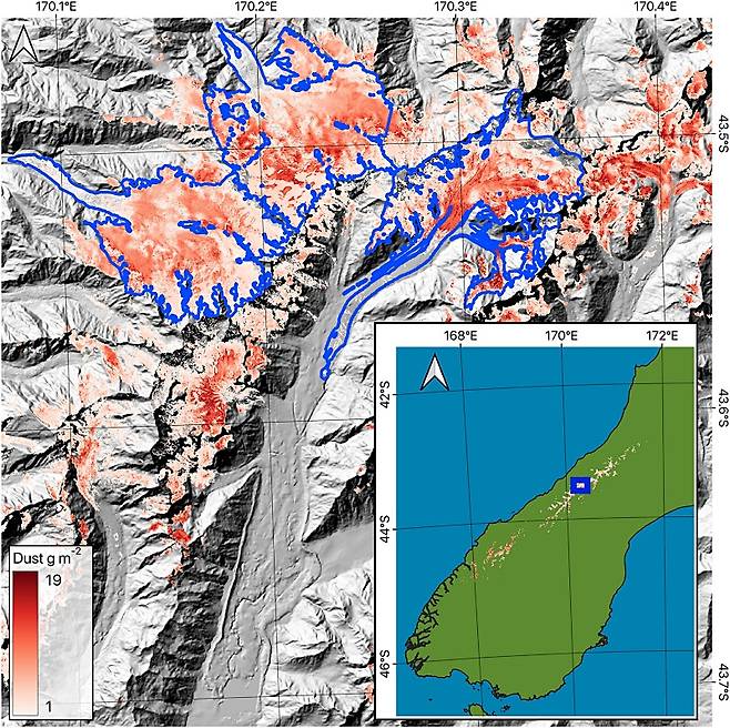 뉴질랜드 서던알프스(Southern Alps) 산맥의 일부 구간이 한때 연분홍색으로 물든 원인은 호주에서 발생한 거대한 모래폭풍이라는 연구 결과가 나왔다.