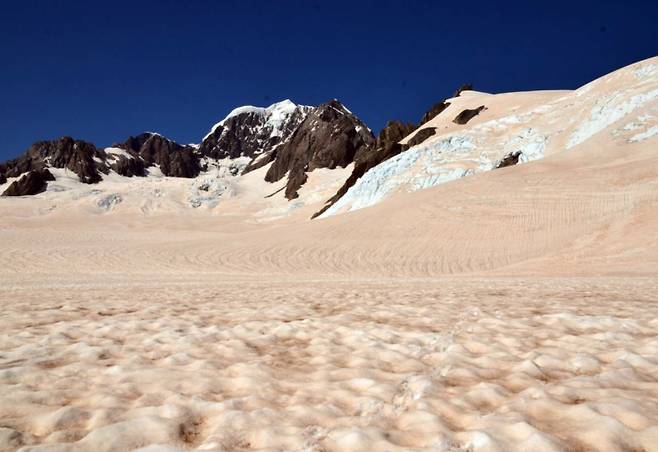 뉴질랜드 웰링턴빅토리아대학교 대기학자 홀리 윈튼 연구원은 12일 조사 보고서를 내고 뉴질랜드 서던알프스 산맥 일부가 2019~2020년 여름철 연분홍색으로 물든 이유는 호주발 모래폭풍이라고 주장했다.