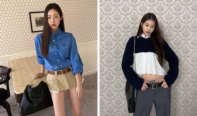 일명 ‘미우미우 룩’으로 로우 라이즈 코디는 셀럽들의 패션에서도 흔히 볼 수 있다. 차정원은 박시한 셔츠와 함께 로우 라이즈 스커트를 무심한 듯 시크하게 걸쳐 입었다. 장원영은 숏 기장의 니트 레이어드룩과 로우 라이즈를 같이 코디하여 모던한 감성을 물씬 살렸다. 자칫 밋밋해 보일 수 있는 코디에 포인트를 주는 벨트와 같이 매치하여 스타일링을 UP 해보자!