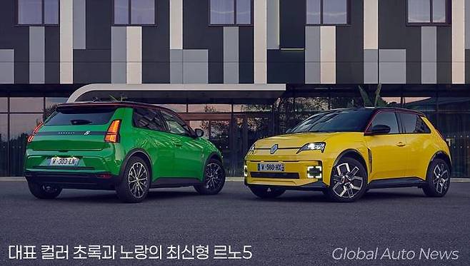 최신형 르노5 전기동력 차량은 팝 그린(Pop Green)과 팝 옐로(Pop Yellow)라는 두 가지 색상이 대표 색이며, 모두 다섯가지 색으로 나온다고 합니다. 그런데 이들 초록과 노랑은 르노5가 처음 등장하던 1972년에도 대표적인 색으로 홍보됐다고 합니다.