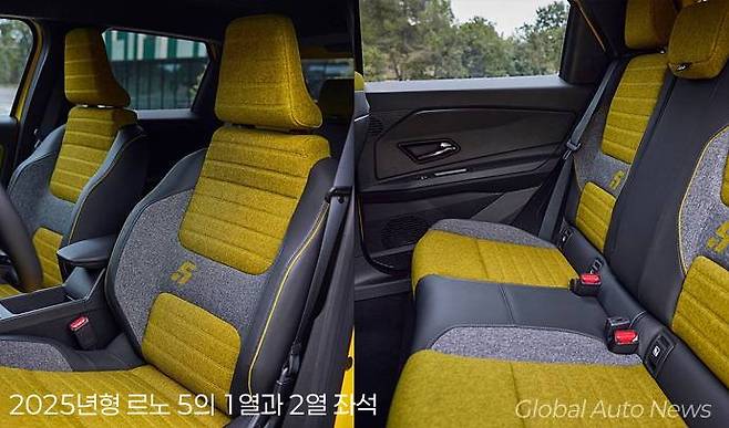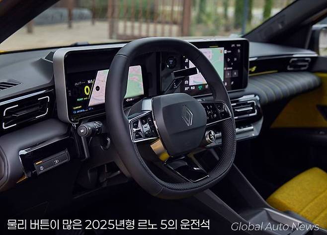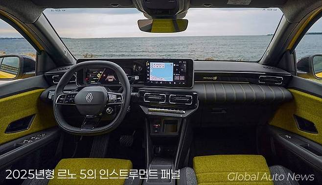 2025년형 르노5 전기동력 차량은 디지털 감각의 디자인을 보여주지만, 시트 재질을 100% 재활용 소재로 쓰는 등 오늘날의 관심사를 특징으로 내세우고 있고, 여기에 프랑스 차량들 특유의 창의적이고 예술적인 디자인과 직관성을 중시한 실내 디자인 등이 주목됩니다.