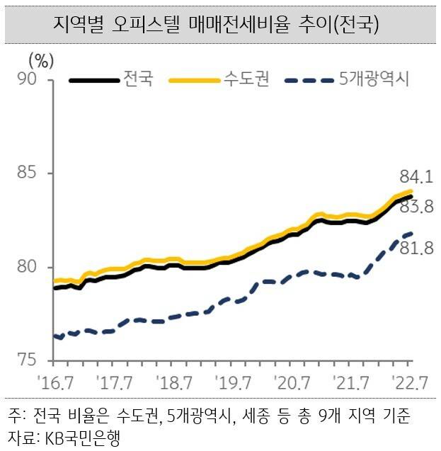 1. 전국 오피스텔 매매전세비율은 전월 대비 0.1%p 상승한 83.8%로 최고치