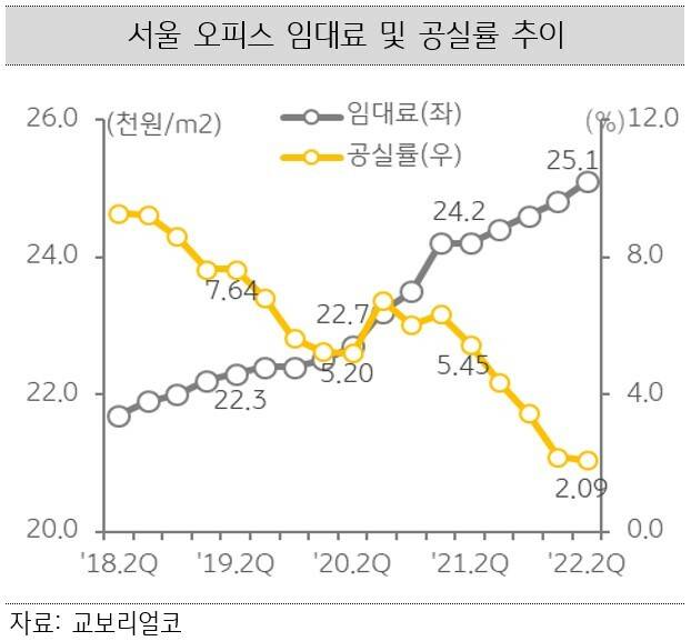 1. 오피스 수요대비 공급 부족으로 견고한 임대인 우위시장