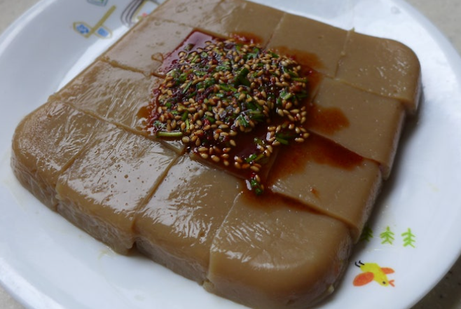 - 무침하기: 물기를 뺀 묵에 간장, 참기름, 깨소금을 넣고 손끝에 힘을 빼고 살살 버무립니다. 이때 묵이 부서지지 않도록 주의합니다.