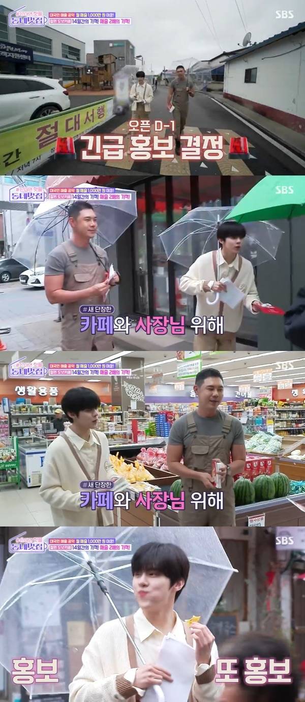 비가 내리는 날씨에도 불구하고 김우석과 유정수 대표는 우산을 쓰고 이웃에 카페 홍보에 나선 모습으로 훈훈함을 더했다. 이후 공개된 카페는 180도 변한 모습으로 감탄을 자아내며 첫날 매출에 관심을 모았다. (사진=SBS ‘손대면 핫플! 동네멋집’ 캡처)