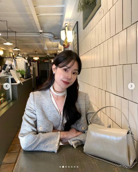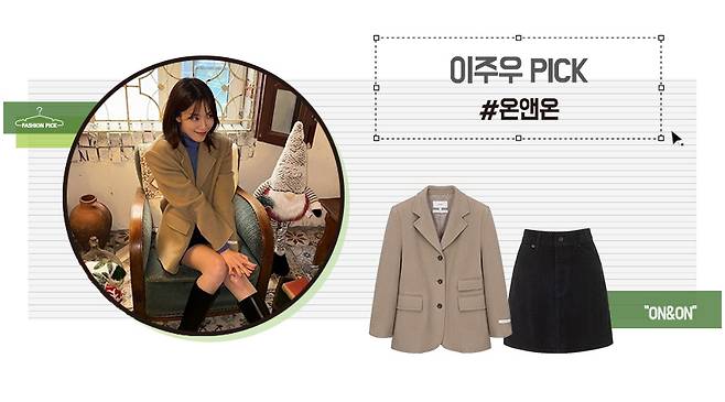 온앤온의 자켓과 치마로 사랑스러운 룩을 연출한 이주우!