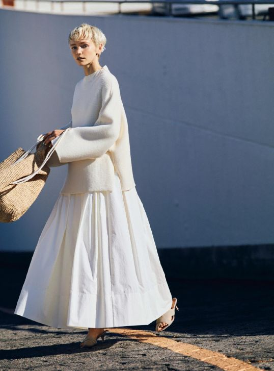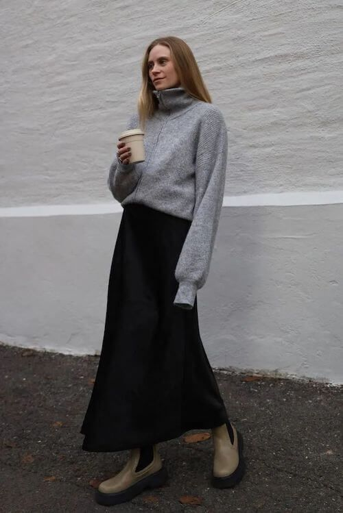 니트와 롱스커트를 이용한 귀여운 코디에요 :)