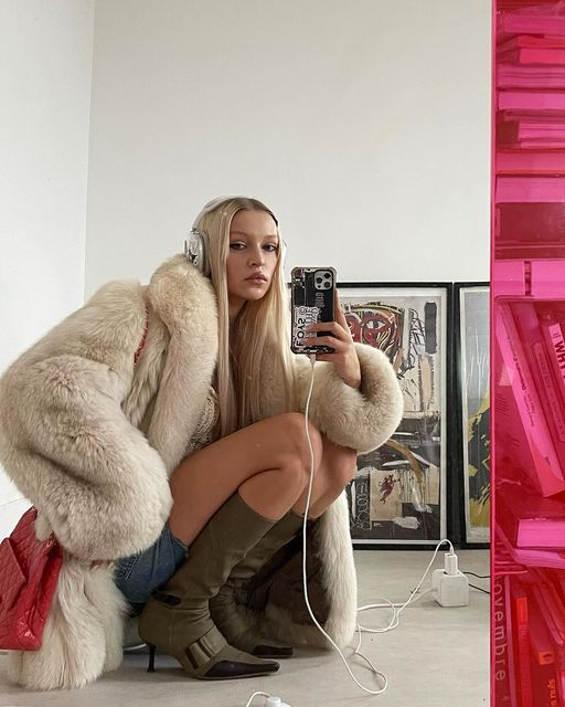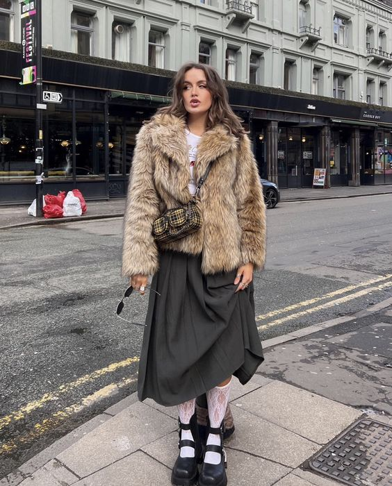 브라운 계열의 퍼자켓과 부츠로 색감에 통일성을 주고