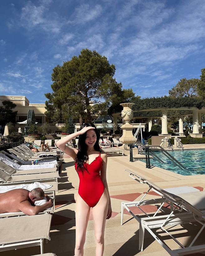 이유비가 라스베이거스의 한 럭셔리 호텔 수영장에서 선보인 수영복 룩이 단숨에 시선을 사로잡았어요.