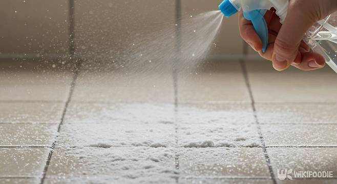 베이킹소다와 식초를 함께 사용하면 세정 효과가 더욱 좋다. 먼저, 줄눈에 베이킹소다를 골고루 뿌린 후 식초를 분무기로 분사한다.