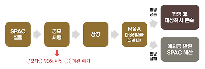 투자자 입장에서는 일단 상장 후 3년 내에 인수하지 못하면 투자자들에게 예치금을 반환해야 하기 때문에 예치금과 이자가 돌아오게 되어 원금이 보장되는 효과가 있습니다.