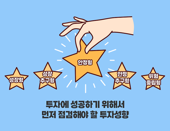 이러한 투자성향은 성장형, 성장 추구형, 위험 중립형, 안정 추구형, 안정형 등 크게 5가지로 나뉠 수 있는데요.