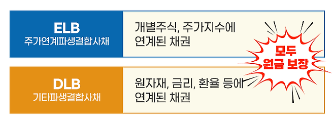 쉽게 말하자면 주식가격이 주가지수와 연동되어 수익률이 결정되는 채권이라고 볼 수 있습니다. DLB(Derivative Linked Bond, 기타파생결합사채)는 원자재나 금리, 환율 등에 연계된 것이라고 보면 됩니다.