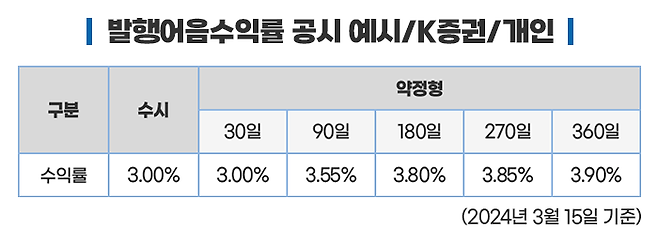 발행어음은 증권사가 필요한 돈을 조달하기 위해 발행하는 어음으로 채권과 유사하며, 하루만 맡겨도 이자를 받을 수 있습니다.