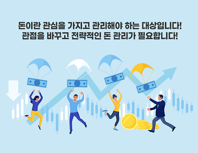 하지만, 은행에 맡겨두거나 안전하다고 예∙적금만 이용하는 것은 돈을 묵히는 것과 별반 차이가 없습니다. 돈이라는 것은 잘 굴려야 하는 즉, 관심을 가지고 관리해야 하는 대상이라는 것이죠.