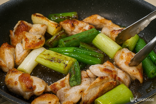 닭다리살에는 단백질과 수분이 일정하게 들어 있어 굽기만 해도 질감이 부드럽게 유지된다. 살결이 두껍고 단단해 열을 받아도 쉽게 마르지 않는다. 대파에는 수분과 자연적인 단맛을 내는 당 성분이 포함돼 열을 받을 때마다 풍미가 늘어난다. 파향을 이루는 알리신 계열 성분은 가열되면 날카로운 향이 줄고 부드러워지며 닭고기와 자연스럽게 섞인다.