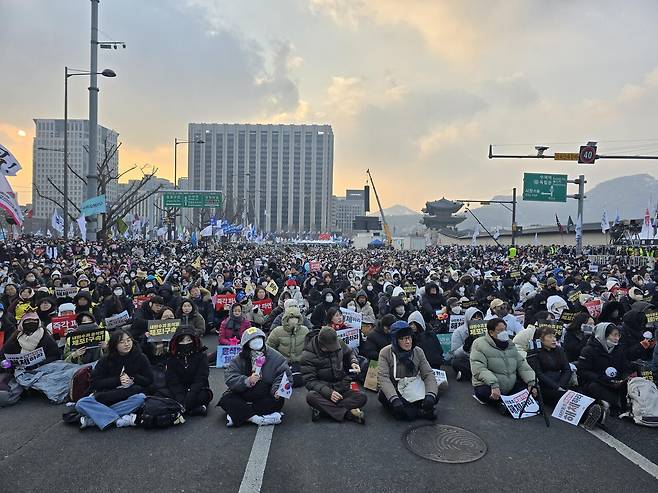 '윤석열 즉각 퇴진·사회 대개혁 비상행동'(퇴진행동)은 이날 오후 3시께부터 경복궁 동십자각 앞에서 집회를 열었다.