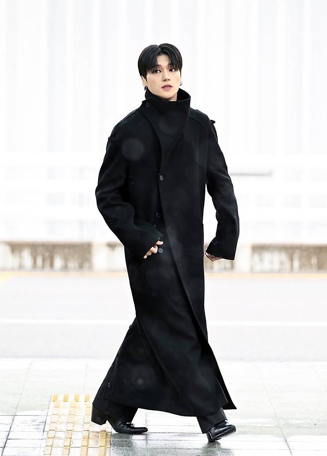 이날 우영은 머리 끝부터 발 끝까지 블랙 컬러의 아이템들을 활용해 스타일리시한 올 블랙룩으로 많은 이들의 눈길을 사로잡았다.